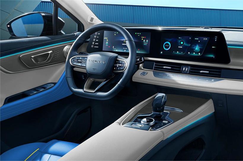 进入车内,新车基于奇瑞全新的Lion 5.0 AI系统打造了智慧座舱,尺寸巨大的双联屏不光集成了众多控制功能,还可以具有深度学习、娱乐互联、远程控制等功能,此外,64色律动氛围灯以及SONY的音响系统也是深受年轻消费者喜爱的配置。