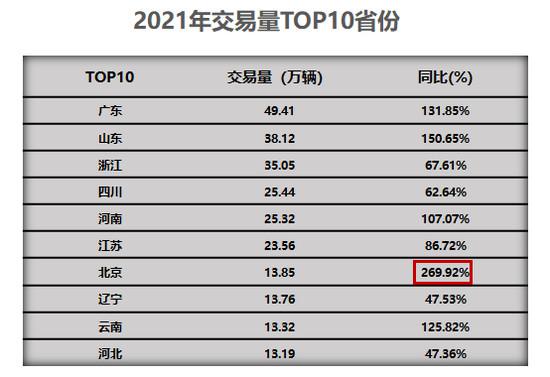 由于去年一季度爆发疫情,今年很多地区一季度二手车交易量同比实现翻倍增长。其中,广东、山东、河南、北京、云南等地区同比增长均超100%,北京增幅达269.92%。山东更是流通协会重点关注市场,被认为“潜力无限”。