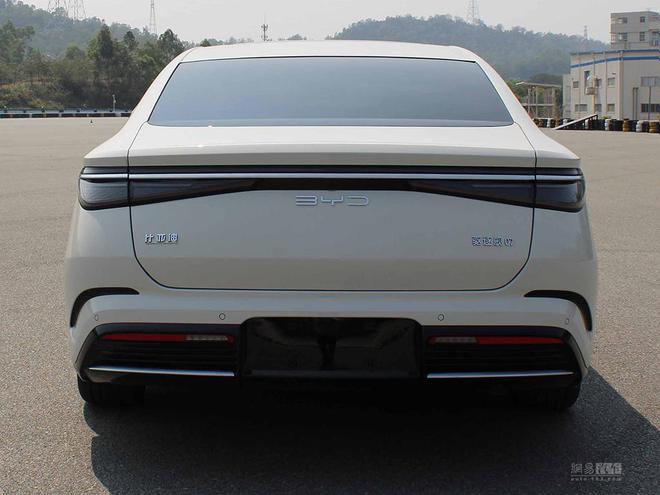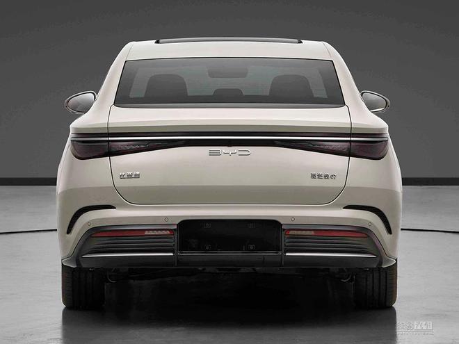 驱逐舰07是比亚迪海洋网首款B+级超混轿车,基于海洋美学设计理念打造,传承了OCEAN X概念车的设计元素,引擎盖两边微微隆起,中部线条快速锋利,配合犀利的深海之眸大灯,前后翼子板上的两条独立腰线,干净和富有切削感的裙板设计一直延续到后保险杠,尺寸上长宽高为4980/1890/1495mm,轴距达到了2900mm,车尾设计得简约雅致(参数丨图片)。后备厢边缘微微上扬的扰流设计巧妙地承接了溜背造型,贯穿式粼光点阵尾灯,带来极具科技感精致感的视觉效果。