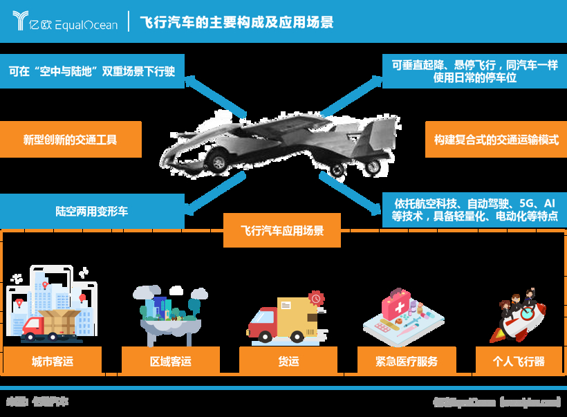 据亿欧汽车了解,飞行汽车宛如一个“陆空两用”的变形车,不仅可以满足个人出行所需,还可用于城市客运、区域客运、货运、紧急医疗服务等多个场景。