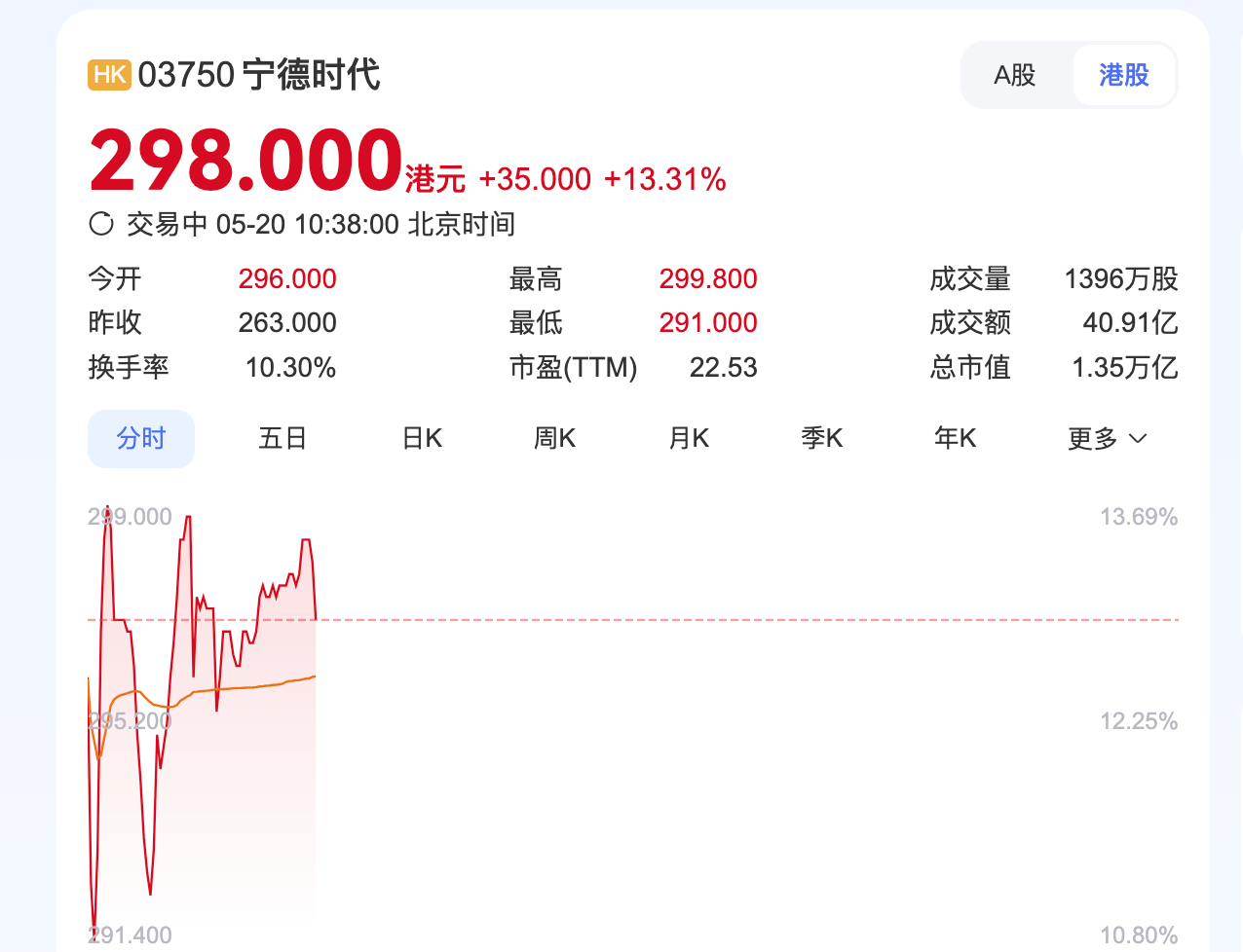 5月20日,宁德时代在香港联合交易所主板挂牌上市(股票代码为03750.HK)。就此,宁德时代也拥有了“A+H”双重上市身份。